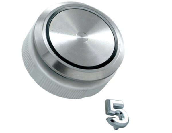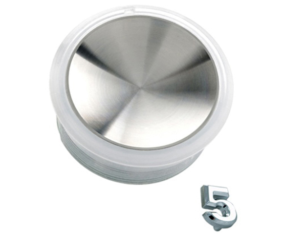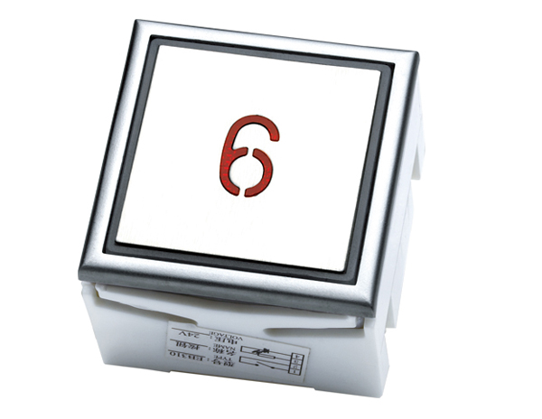 Asansör düğmesine damgalama tekniği kullanılarak oluşturulan paslanmaz çelik yüz plakası ve paslanmaz çelik belirti veya numaraları vardır. Braille düğmeleri de isteğe bağlıdır. preslenmiş parça yolcular aydınlatma rengini görmek için izin saydam reçine ile doldurulur.asansör düğmesi kolay kurulum için ipliklerle tasarlanmış ve 2mm den 6mm kalınlığında bir panele monte edilebilir.